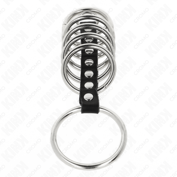 KINK – 7 ANELLI PER PENE IN METALLO DA 3,2 CM A 5 CM COLLEGATI DA PELLE