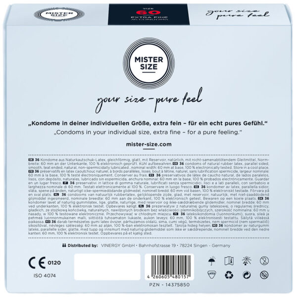 in un preservativo troppo stretto. Ma state tranquilli, con MISTER SIZE 60 tutto si adatta perfettamente e potete rilassarvi e concentrarvi completamente su tutte le cose belle. Quindi godetevi il momento e volate verso altezze inaspettate.