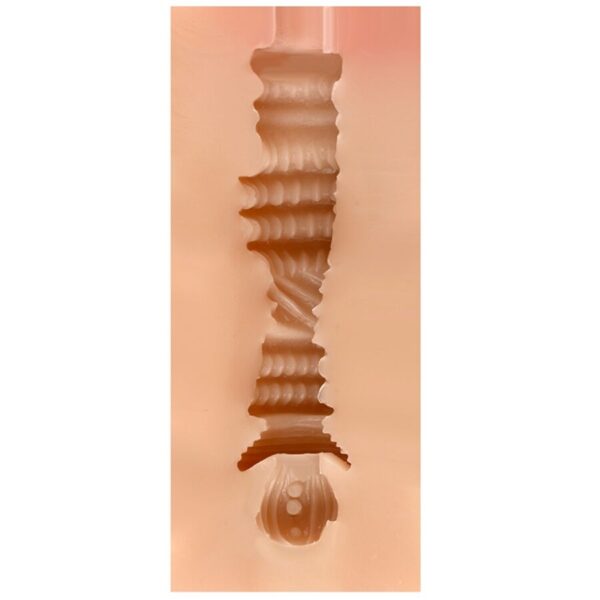 - Texture interna ultrasensoriale: il canale interno è progettato con diverse texture, come creste, noduli e punti di pressione, che aumentano l'attrito e la stimolazione a ogni movimento. A seconda del modello, alcune versioni presentano camere di aspirazione che intensificano la sensazione naturale di suzione.