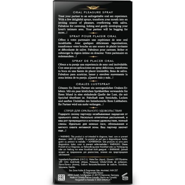 Regala al tuo partner un'esperienza di sesso orale indimenticabile. Con pochi spruzzi, trasforma la tua bocca in un'irresistibile fonte di piacere, piena di saliva. Favoloso per accarezzare, leccare e avvolgere delicatamente le parti intime del tuo amante. Il tuo partner non vedrà l'ora di provarlo!