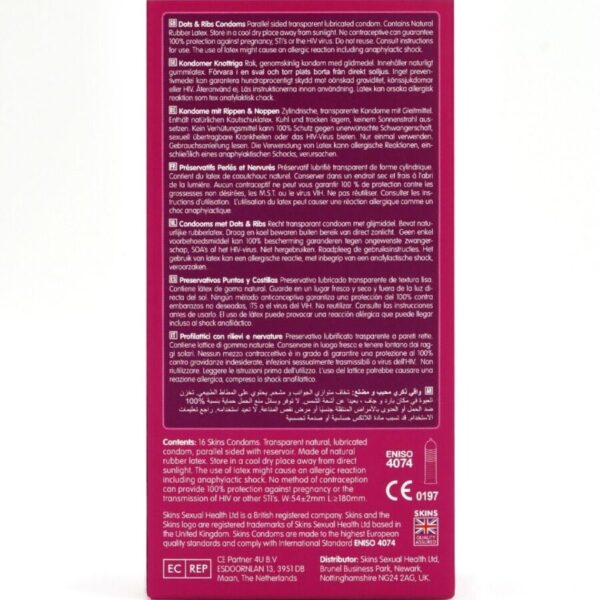 SKINS – DOTS & RIBS PREMIUM CONDOMS CONFEZIONE DA 16