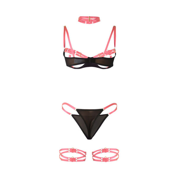 SUBBLIME – 955304 COMPLETO REGGISENO CON COLLANA E DETTAGLI GAMBA ROSA FLUO L/XL
